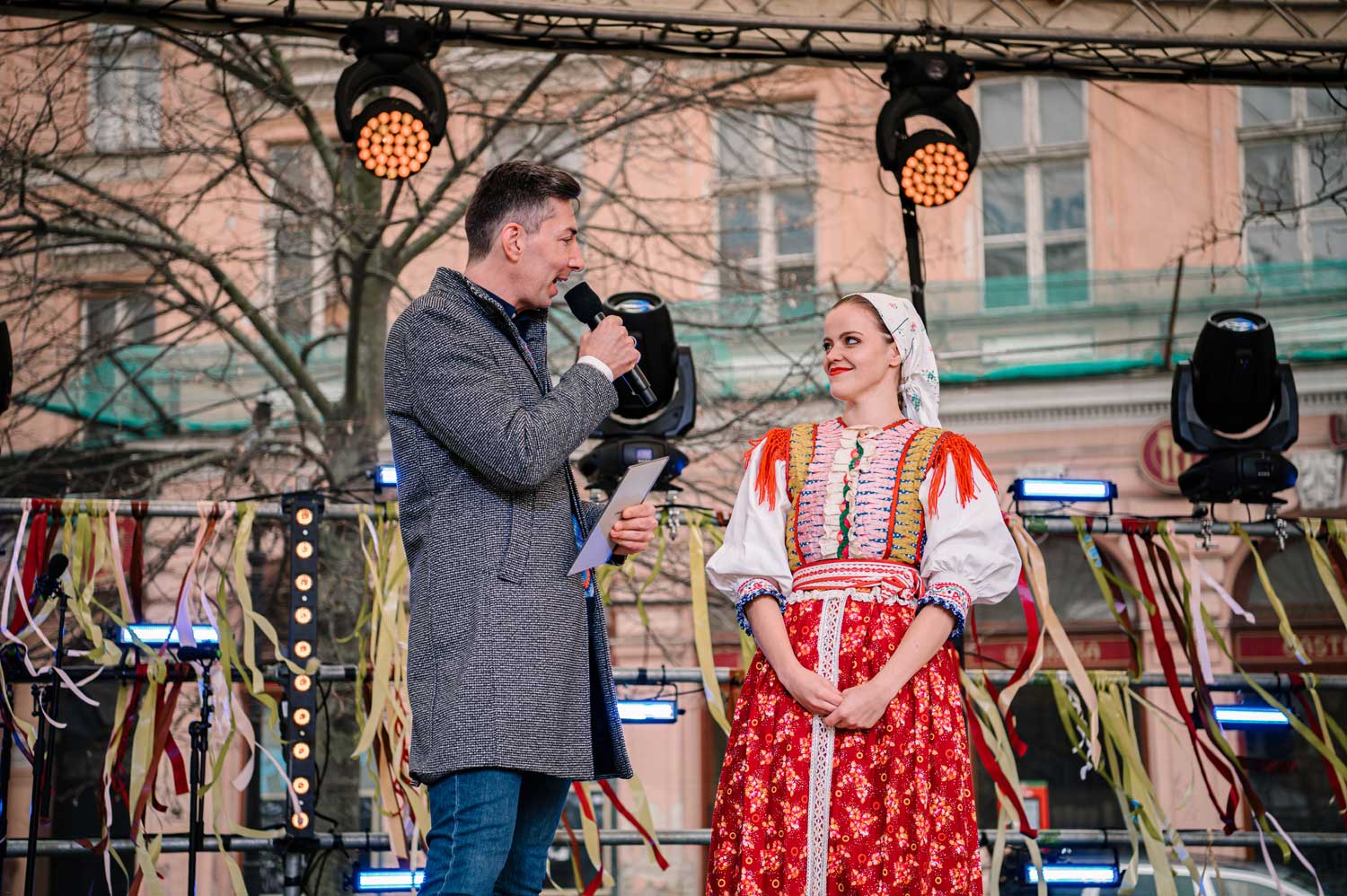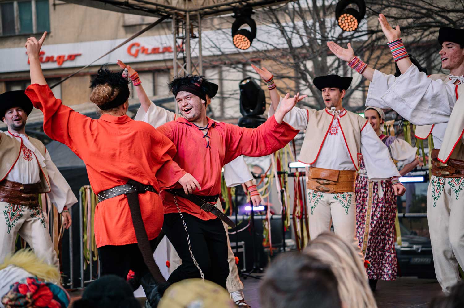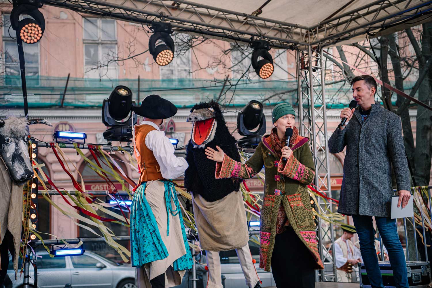 Moderované vstupy Martina Staňa s odborníčkami a odborníkmi o význame fašiangov, komentovaná prehliadka masiek zo SĽUKU, škola tanca, súťaž masiek