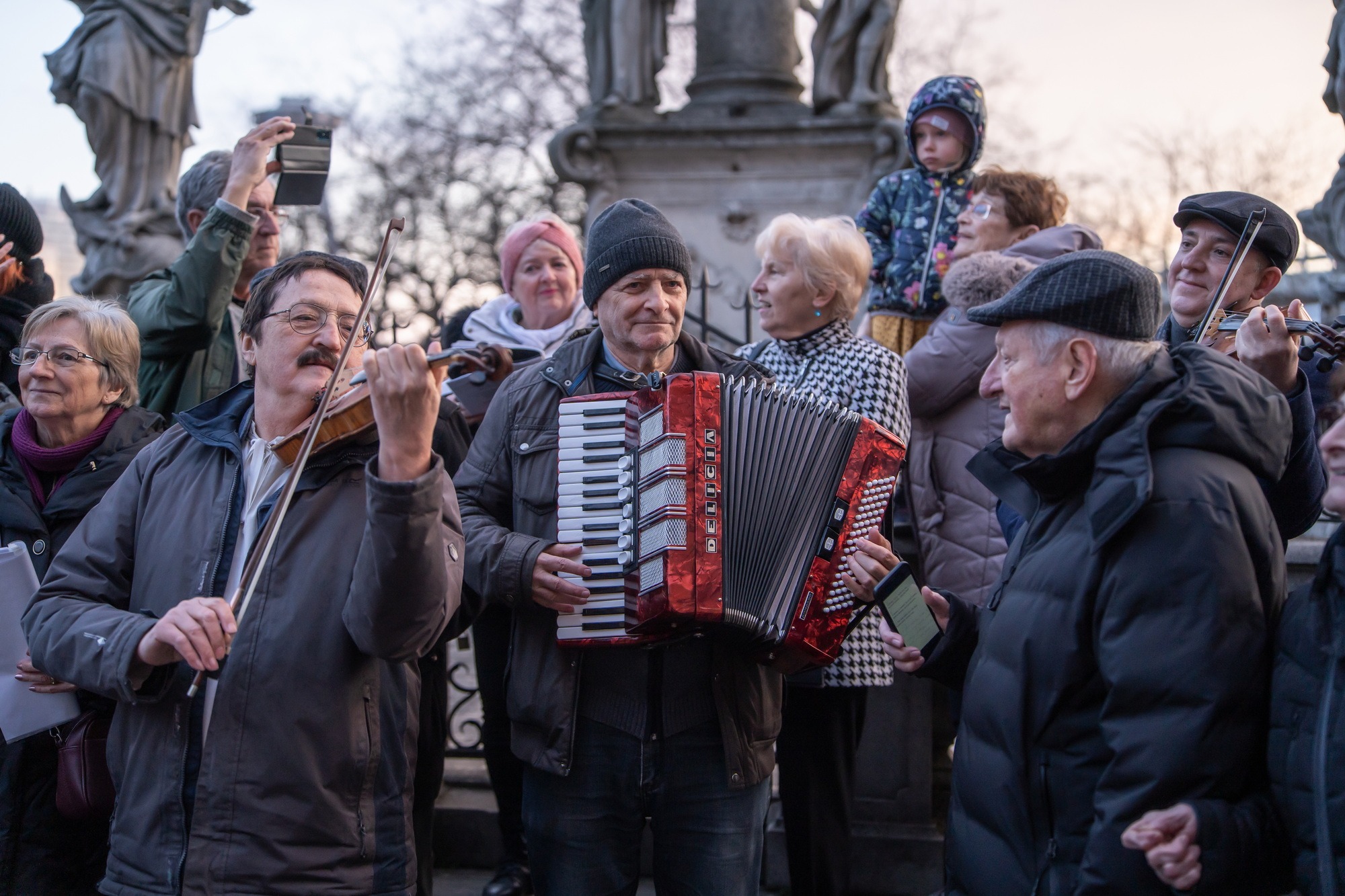 Sprievod fašiangovo naladia Kuštárovci evergreenmi a ľudovkami.