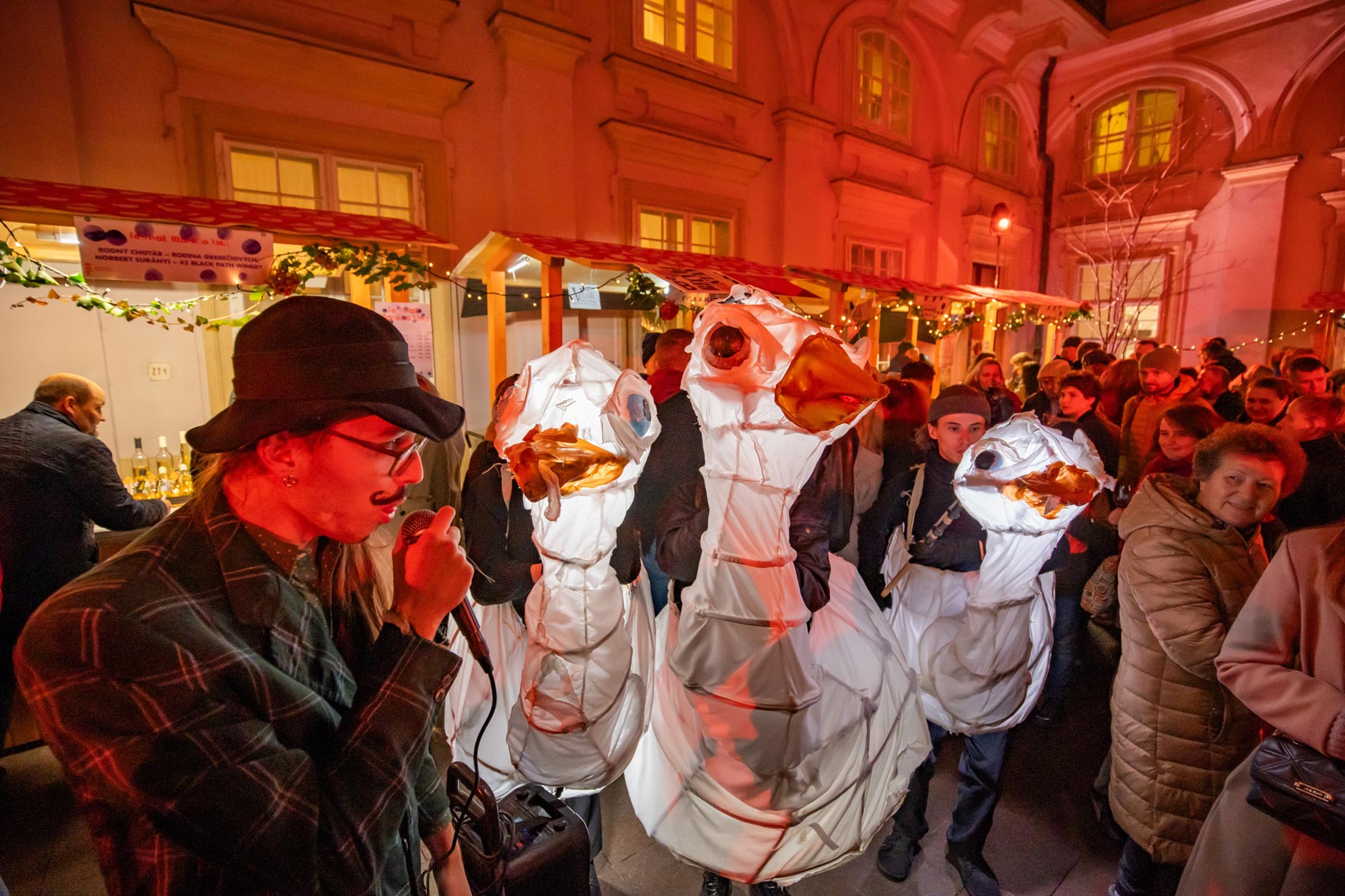 Návštevníkov a návštevníčky prevedú celou vínnou cestou po jednotlivých nádvoriach morky z Divadla Š.E.M. Pouličnú estrádnu šou predvedú v sobotu o 16:30, 19:00 a 20:30 so začiatkom na Primaciálnom námestí.