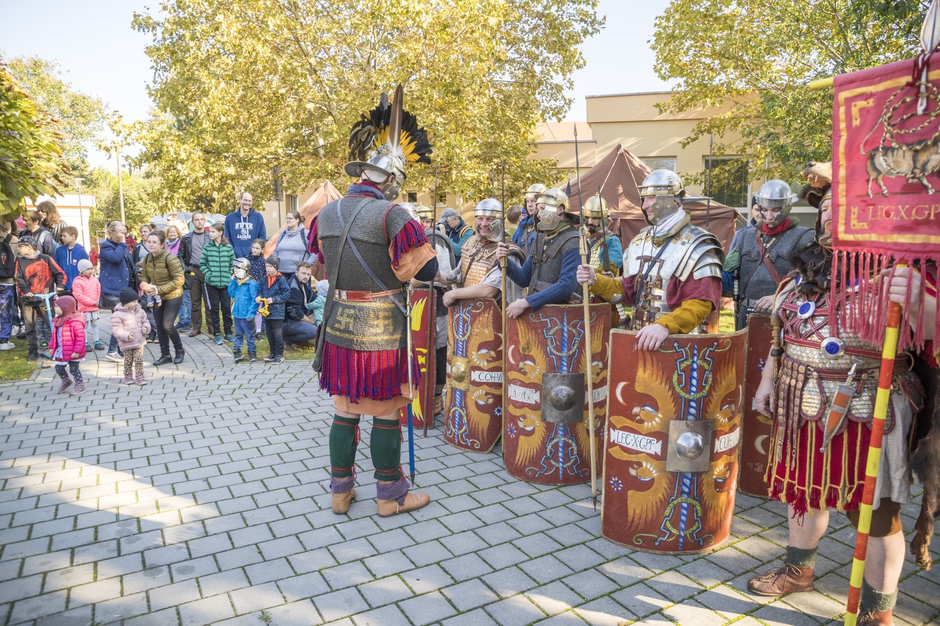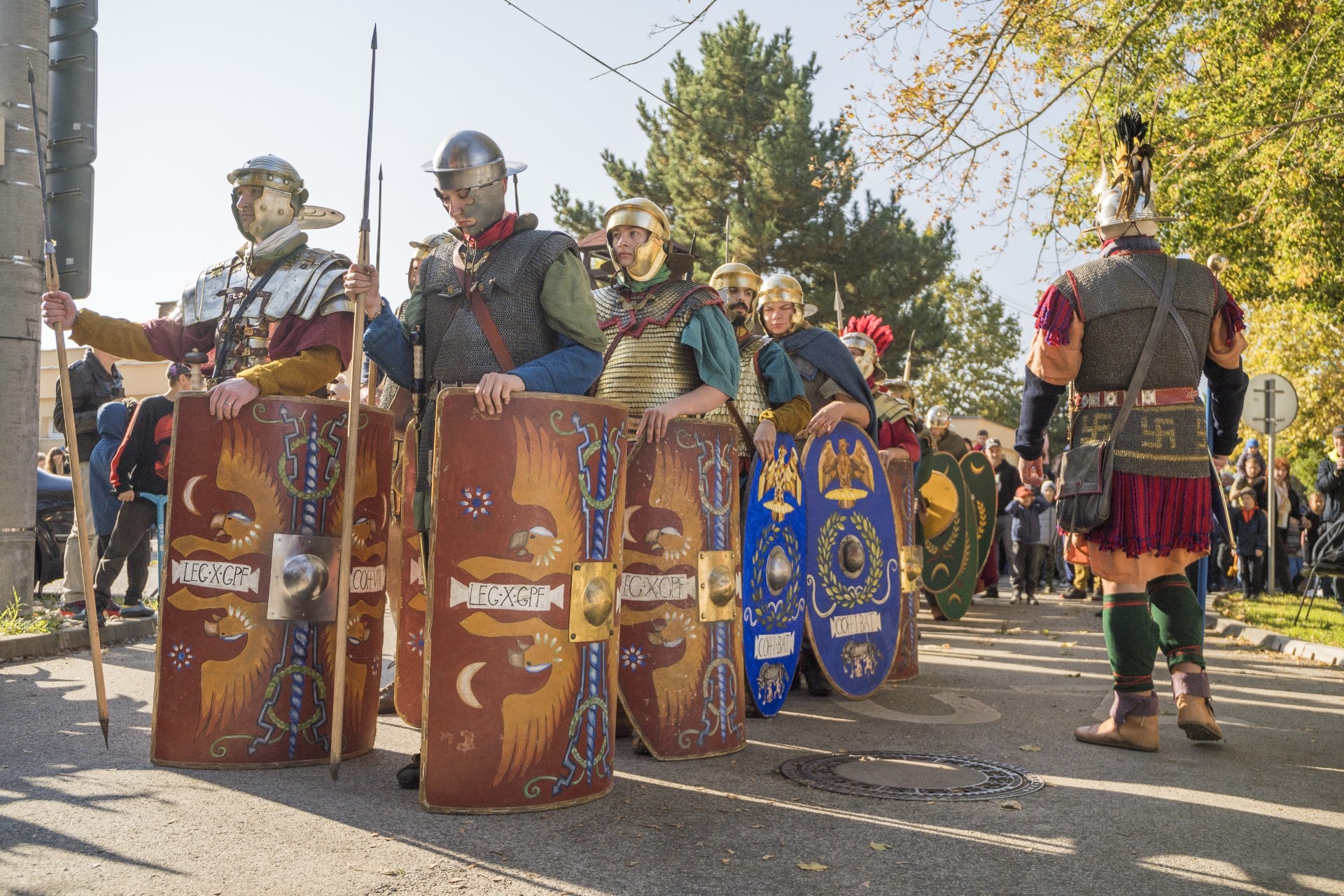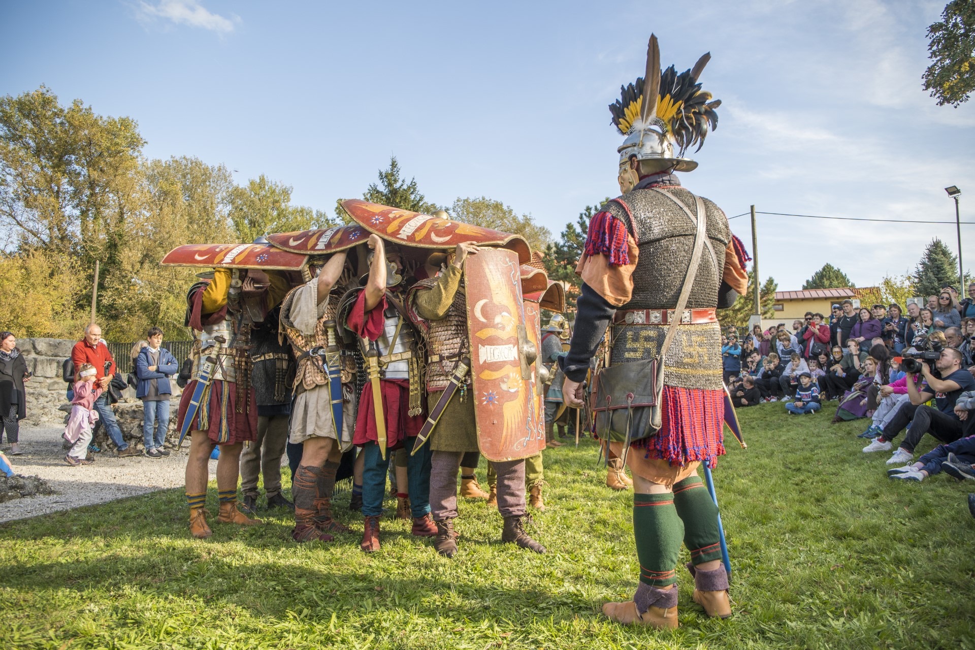 14:30 – 15:15 ukážka špeciálneho zoskupenia vojakov so štítmi, tzv. korytnačky